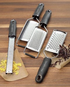 3. Microplane Grater– These are so handy & come in various sizes & take up very little space in your gadget drawer. They can be used on everything from nutmeg, to garlic, to cheese, & lemon and lime zest is a very common ingredient.