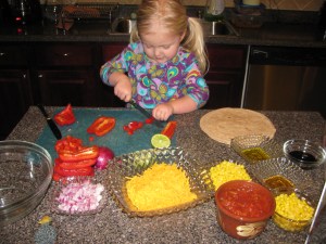 While the quesadillas are cooking, you can have your children help set the table, maybe even decorate the table in festive colors, better yet, let them make their own snack for the next day with this great easy recipe that is healthy, nutritious, and promotes their creative thinking.