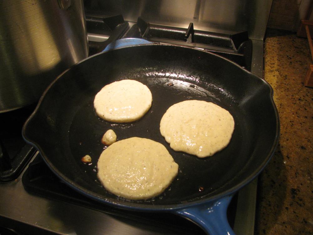 2) Melt the Crisco in a skillet (cast iron is preferred) over Med. heat. Drop small ladles of the batter onto the hot oil. When the edges are crisp, flip the cornbread over and continue to cook until browned and crispy on the other side.