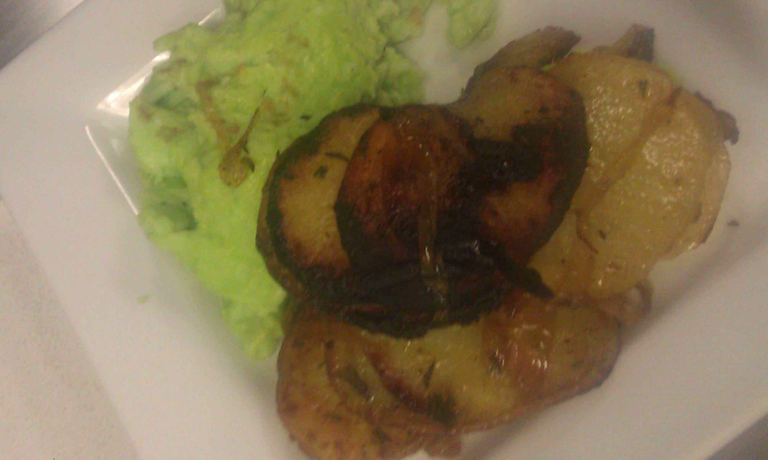 Peel and slice the potatoes thin. In a medium to large non stick skillet add the oil and heat to medium to high heat. Add the sliced onions and saute for about a minute. Add the potatoes. Add the curry powder and fresh rosemary and season with salt and pepper to your taste. Turn heat to medium and every continue to turn the potatoes every five minutes or so. The potatoes will start to brown and crisp up on the edges and the onions will continue to caramelize adding to the sweetness. Once potatoes are done to your likeness, serve immediately with green eggs and ham.
